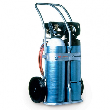 The cylinder cart: stable, ergonomic, lightweight, interchangeable cylinders in seconds, everything you need to roll up hoses, store torches and welding rods.