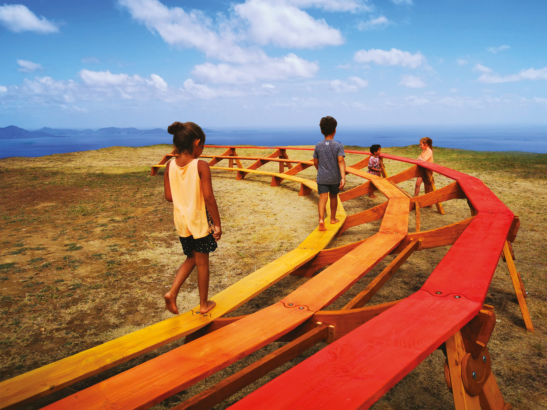 All the elements can be fitted to close the circle, increasing capacity to 360 people (one person per step).